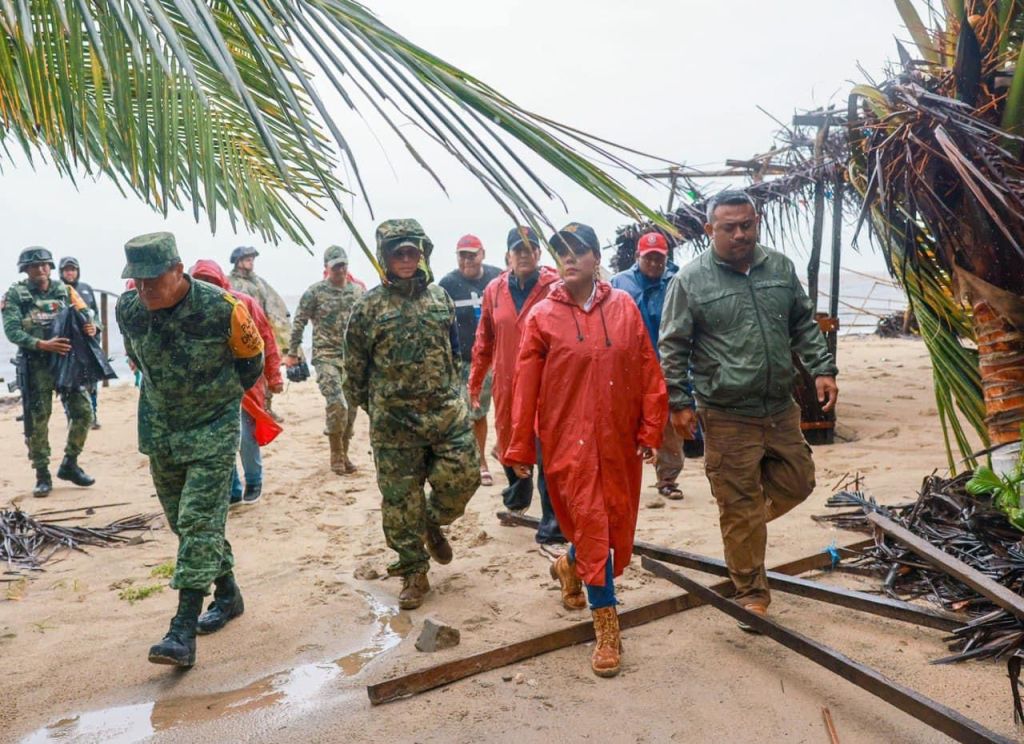 En su visita, la gobernadora sostuvo una reunión con el alcalde de Marquelia, Lincer Casiano Clemente, para conocer el grado de afectación en esta zona, que fue la que recibió el impacto directo del meteoro; más tarde, se trasladaron a la comunidad de Playa Bocana, perteneciente a este mismo municipio, en donde, de acuerdo a una primera evaluación, se registraron daños a enramadas y restaurantes cercanos a la línea costera.