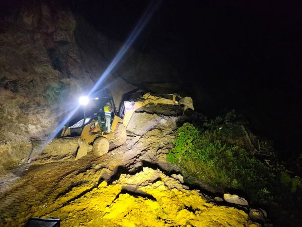 Chilpancingo, Gro., 29 de septiembre de 2024. La madrugada de este domingo, trabajando para ofrecer caminos seguros para el traslado de las familias y los servicios, la brigada operativa de la Secretaría de Desarrollo Urbano, Obras Públicas y Ordenamiento Territorial, continuó con los trabajos de remoción de escombros y liberación de tramos carreteros en el camino que lleva a la comunidad de Llanos de Tepoxtepec en Chilpancingo.