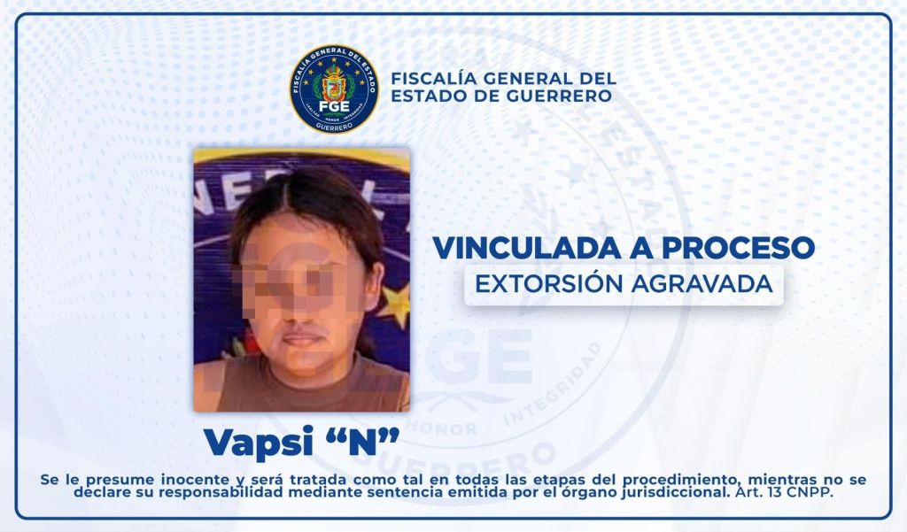 FGE de Guerrero vincula a proceso a Vapsi «N» por extorsión agravada en Teloloapan.