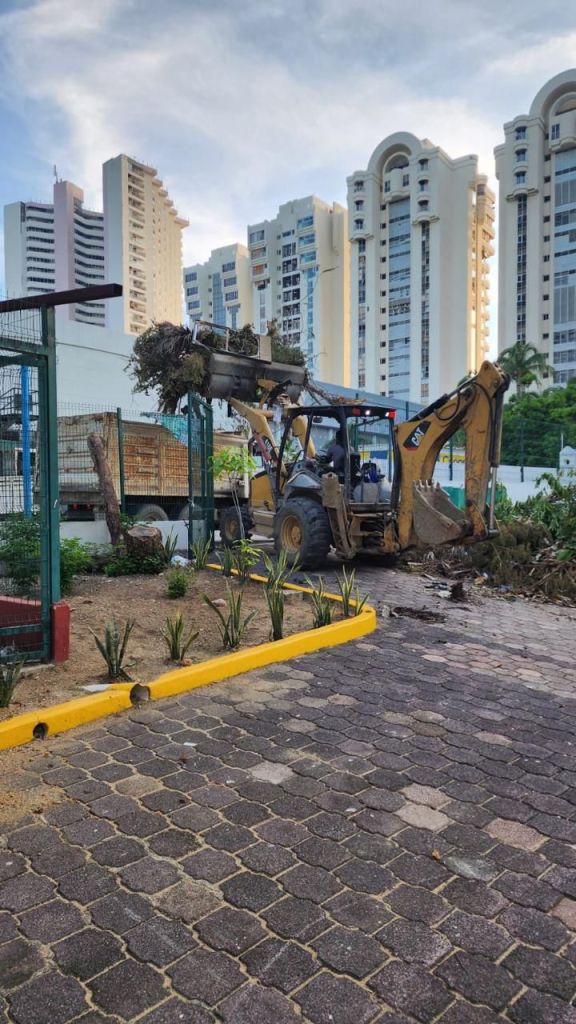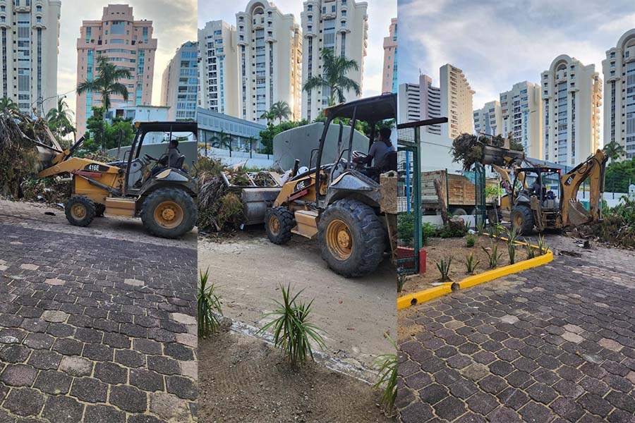 Acapulco Gro. 15 de octubre del 2024. – En un esfuerzo por restaurar uno de los espacios culturales más emblemáticos de Acapulco, el Gobierno del Estado realiza la limpieza en el Centro Cultural Acapulco con el retiro de basura y los escombros acumulados tras el paso del huracán John, que afectó gravemente a diversas áreas de la región.