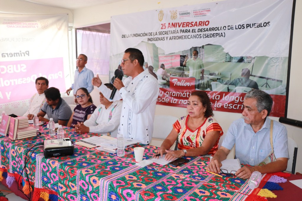 Chilpancingo, Gro., 24 de octubre de 2024.- Como parte de las actividades por el 25 aniversario de la creación de la Secretaría para el Desarrollo de los Pueblos Indígenas y Afromexicanos (SEDEPIA), se llevó a cabo la inauguración del Taller de Ortografía y Gramática de la Lengua Tu’un Savi, bajo la norma de la escritura de esta lengua originaria.
