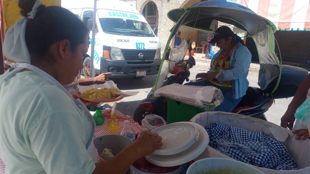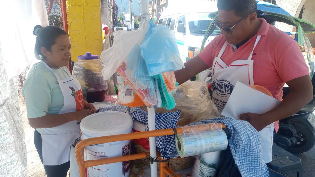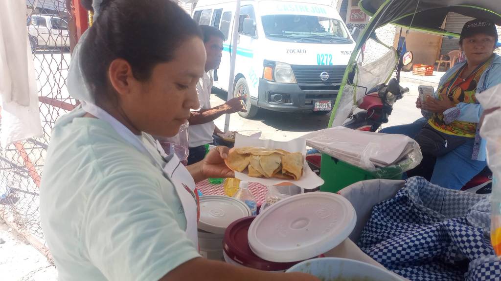 Por si algo faltará, el amigo «Félix» reconoce que las ventas están muy bajas quizá la peor del año. «La mejor manera de ayudarnos es comprando nuestros deliciosos tacos de canasta de mole, chicharrón, frijol, papas, pollo y su variedad de suadero, estamos a partir de las 8 de la mañana hasta terminarlos».