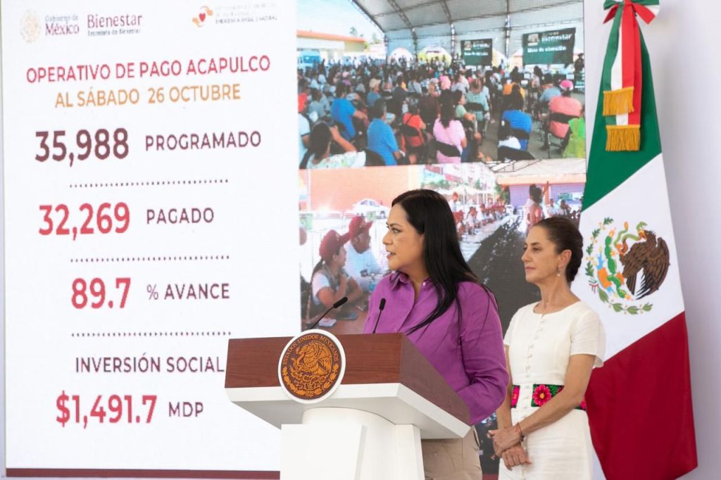 Agregó que el operativo de pago en Acapulco, hasta el sábado 26 de octubre, registra avance de 32 mil 269 personas de un total de 35 mil 988, es decir, 89.7 por ciento, con inversión social de mil 491.7 millones de pesos; la entrega es de manera directa y sin intermediarios.
