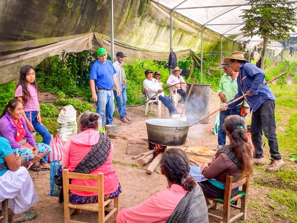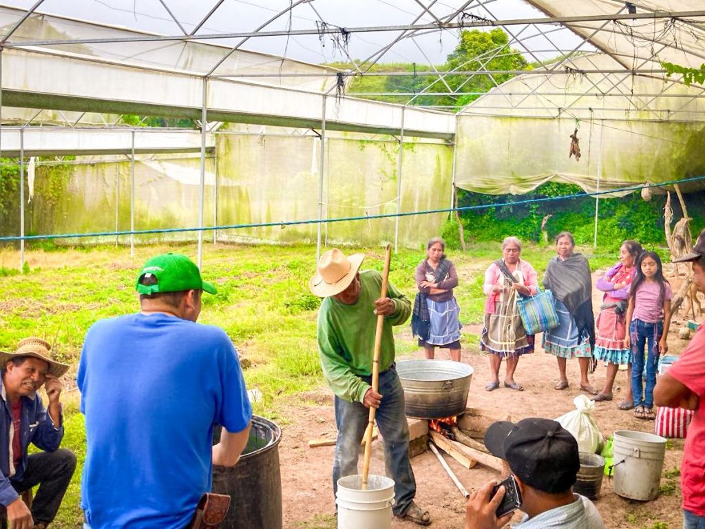En la capacitación, los agricultores participaron activamente en el proceso de preparación y aplicación de la solución natural, diseñada para proteger los cultivos de forma sostenible.