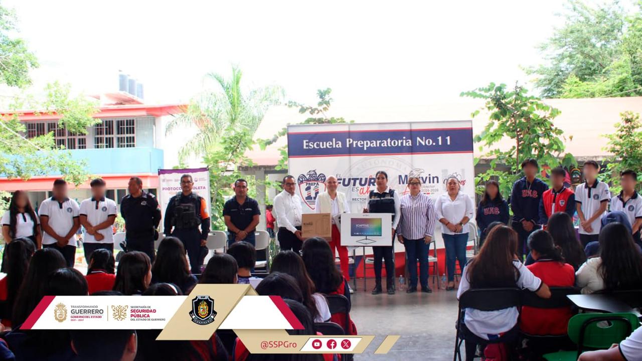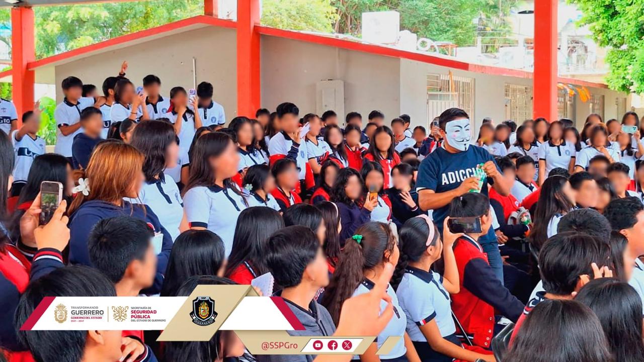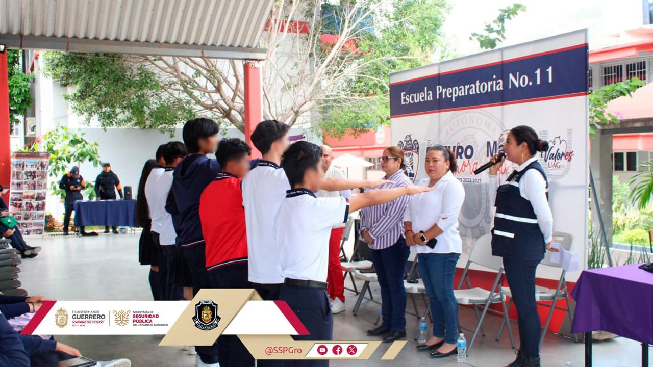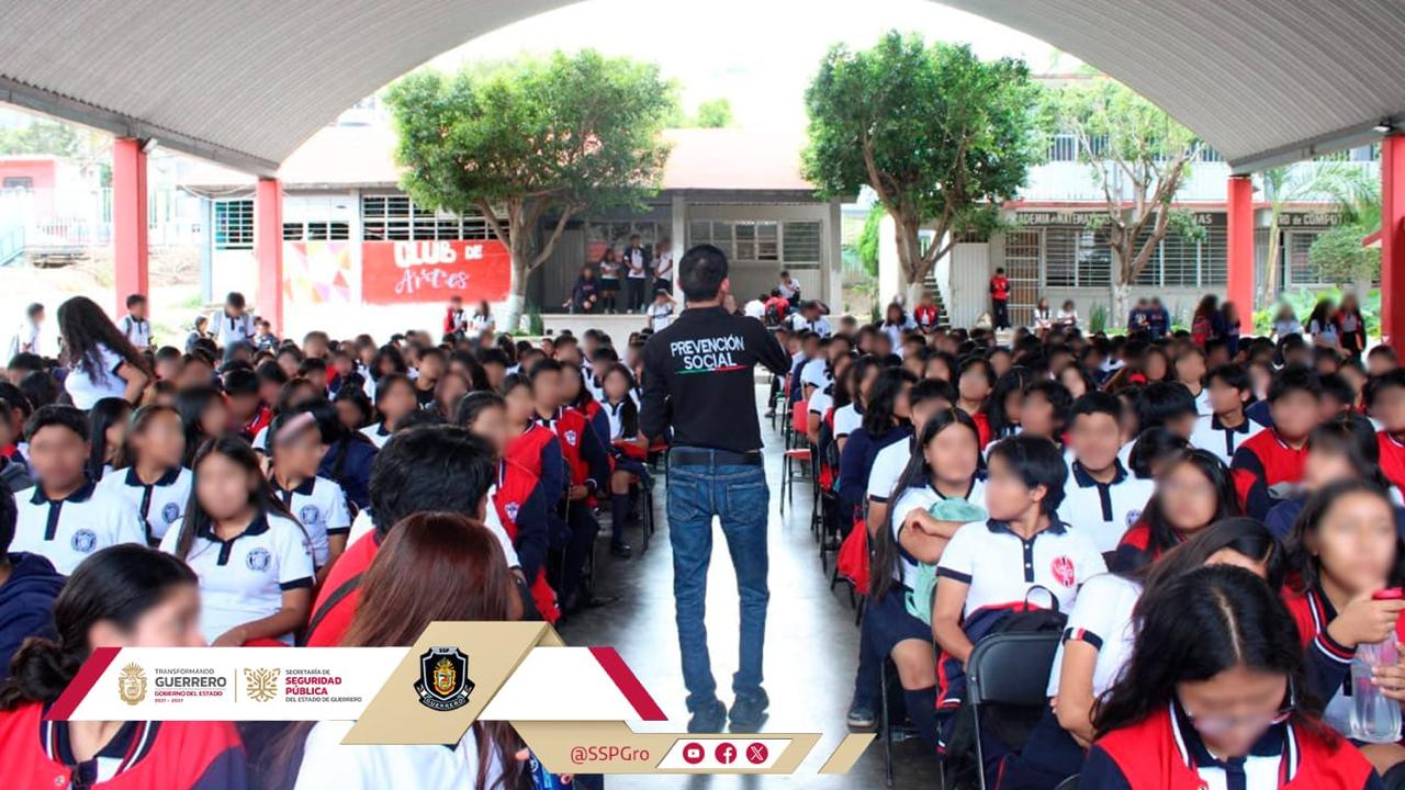 Alumnado y docentes de la Escuela Primaria Nicolás Bravo, así como de la Unidad Académica Escuela Preparatoria número 11 de la UAGro, recibieron pláticas sobre medidas de autoprotección y cuidado; el buen uso de las redes sociales, prevención de adicciones, además de la puesta en escena Rompiendo el Silencio.