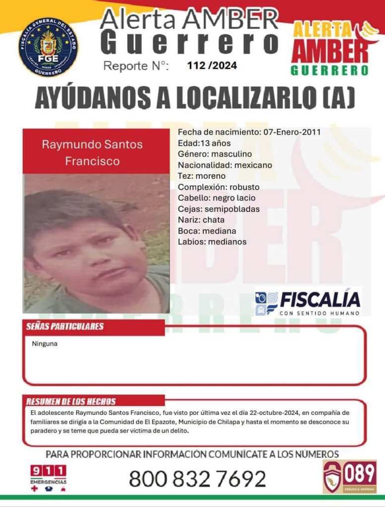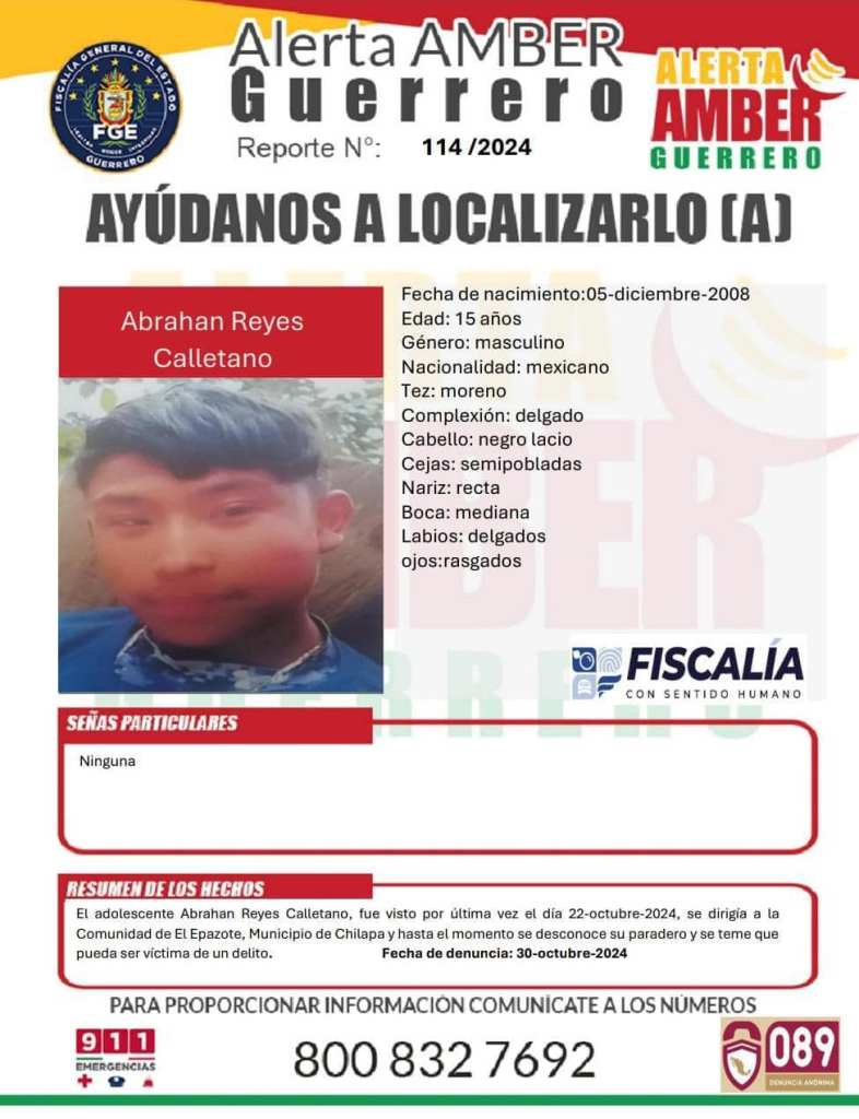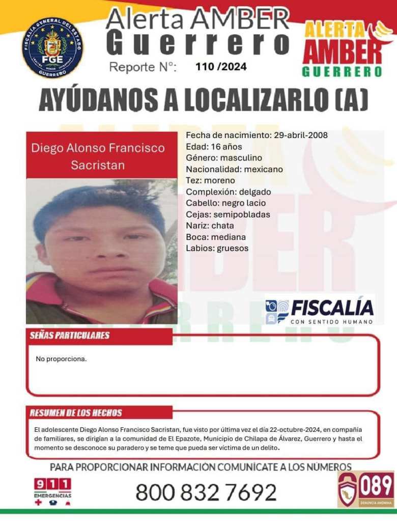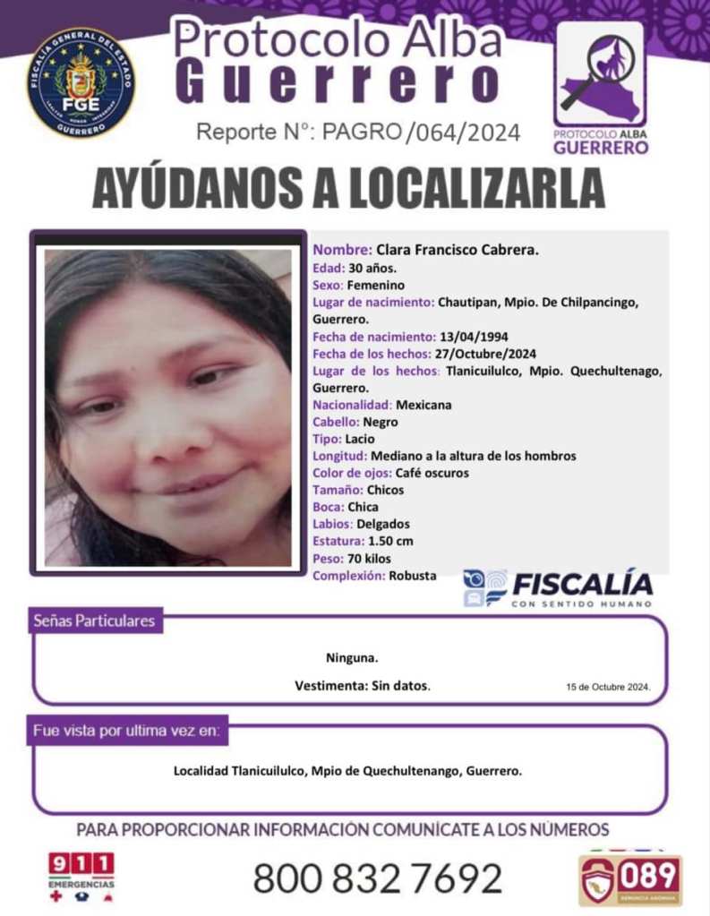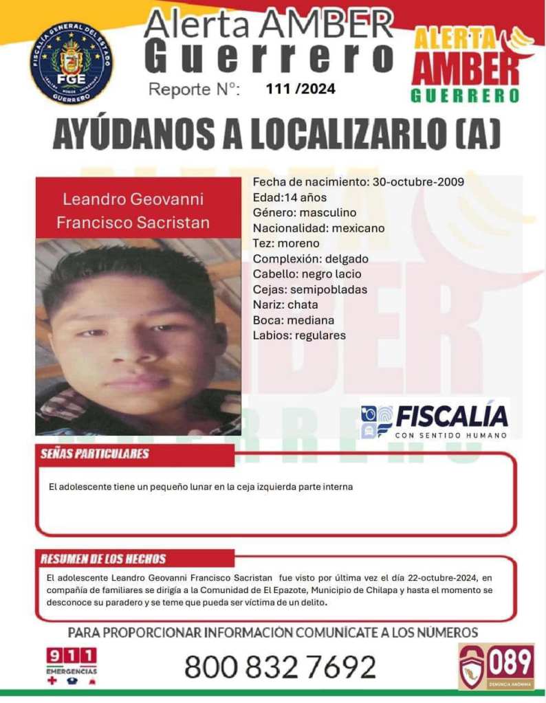 La información que aporten los ciudadanos será recibida de manera confidencial en la Fiscalía General del Estado de Guerrero con domicilio en René Juárez Cisneros S/N, El Potrerito, 39098 Chilpancingo de los Bravo, Gro.; además de vía telefónica y mensajería WhatsApp al 747 107 4759.