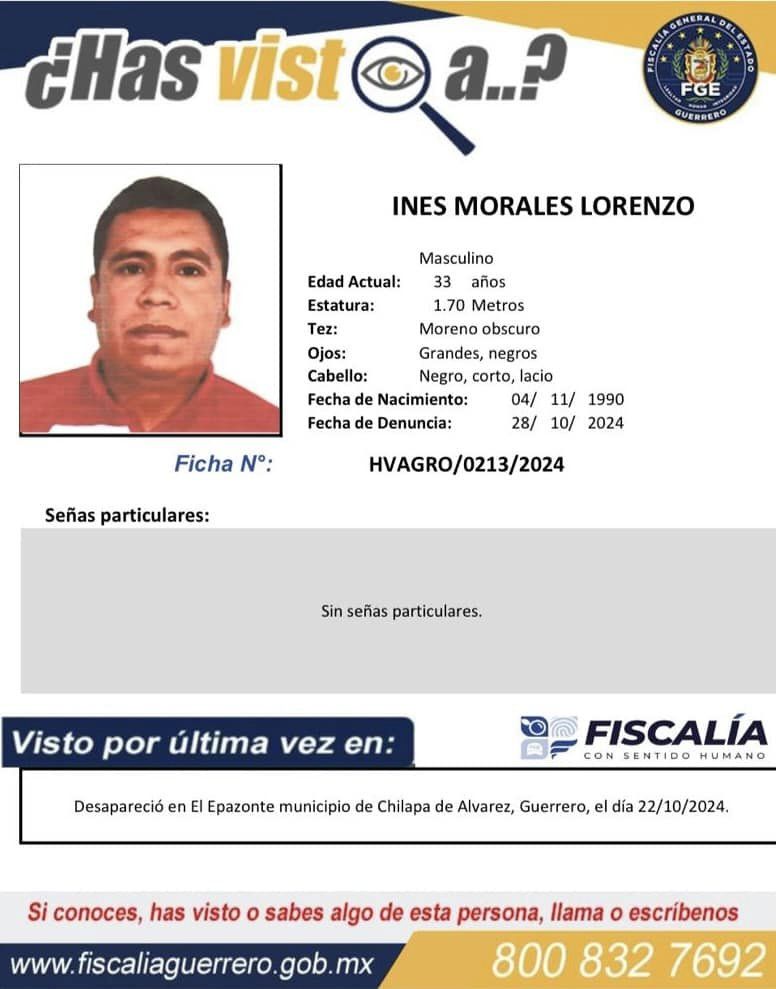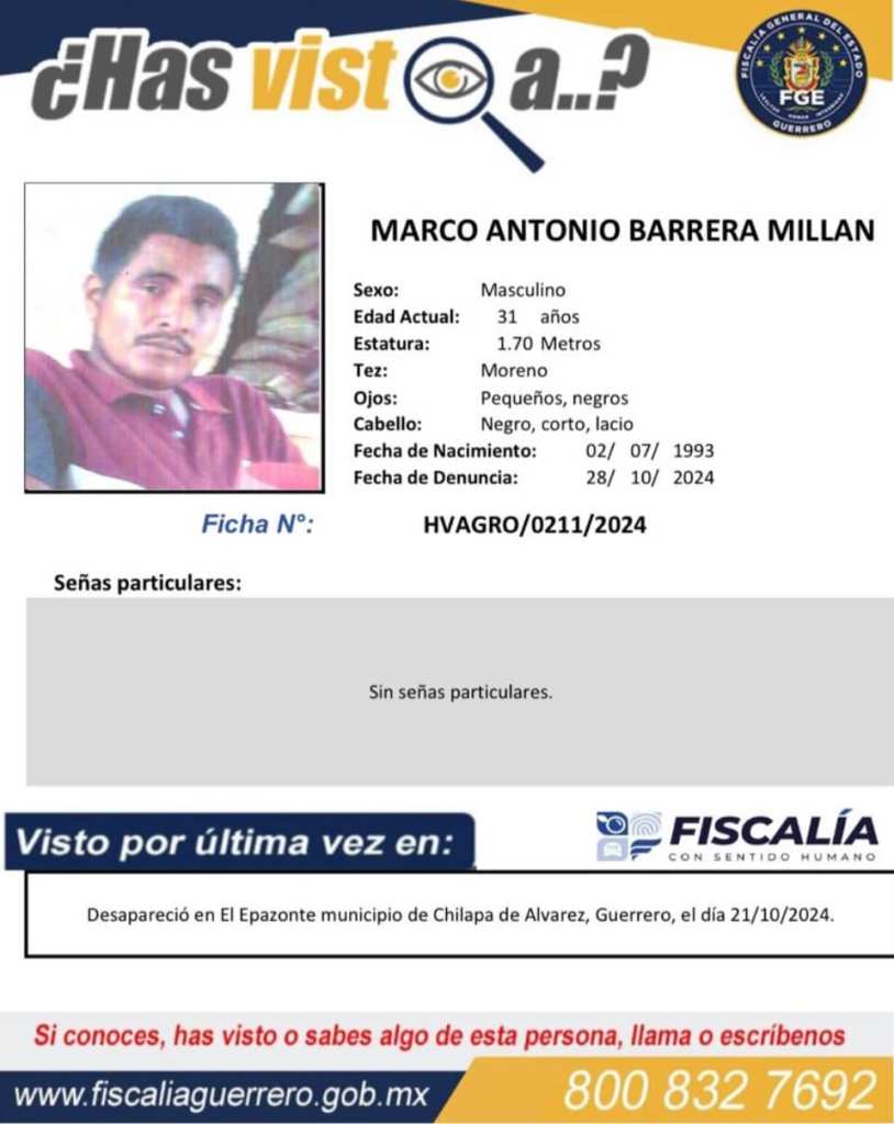 La FGE Guerrero precisa que mantiene las acciones de gabinete y campo a través de la Fiscalía Especializada en Búsqueda de Personas Desaparecidas en la localidad de El Epazote y comunidades vecinas a los municipios de Chilapa de Álvarez y Quechultenango.