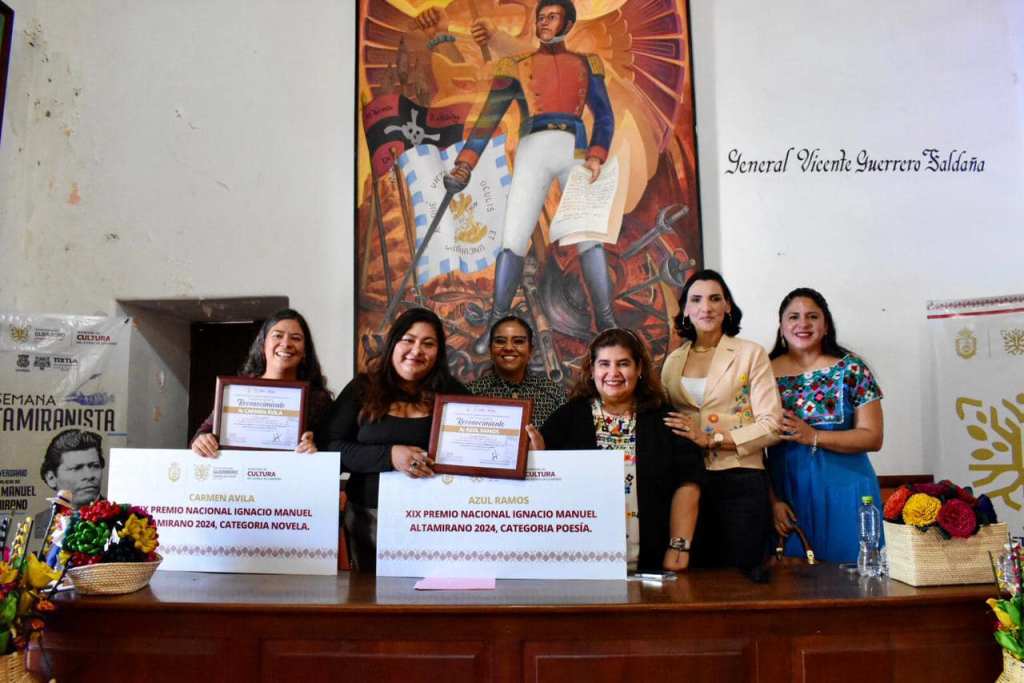 Tixtla, Gro., 15 de noviembre de 2024.- Como parte de la “35 Semana Altamiranista” que se realizó en el municipio de Tixtla, el gobierno del estado que encabeza, Evelyn Salgado Pineda, a través de la Secretaría de Cultura otorgó el galardón a las ganadoras del “XIX Premio Nacional de Novela y Poesía Ignacio Manuel Altamirano 2024”.