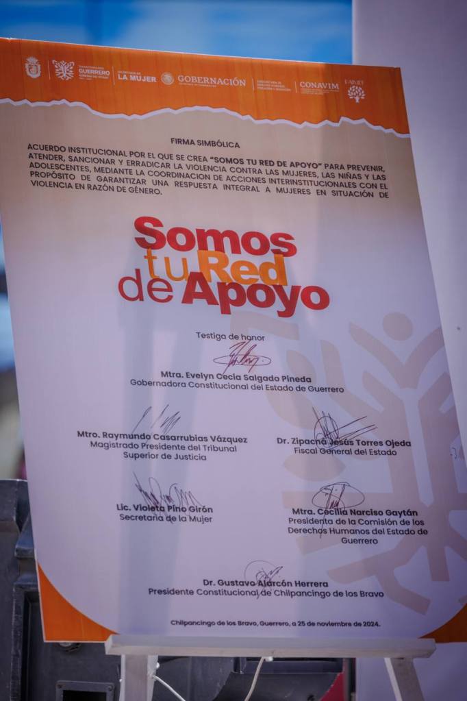 Con esta firma de colaboración, el estado de Guerrero se suma a la estrategia nacional de «Somos tu Red de Apoyo» convocada por la Comisión Nacional para Prevenir y Erradicar la Violencia contra las Mujeres (CONAVIM), para coordinar acciones y garantizar el acceso a las mujeres a una vida libre de violencia.
