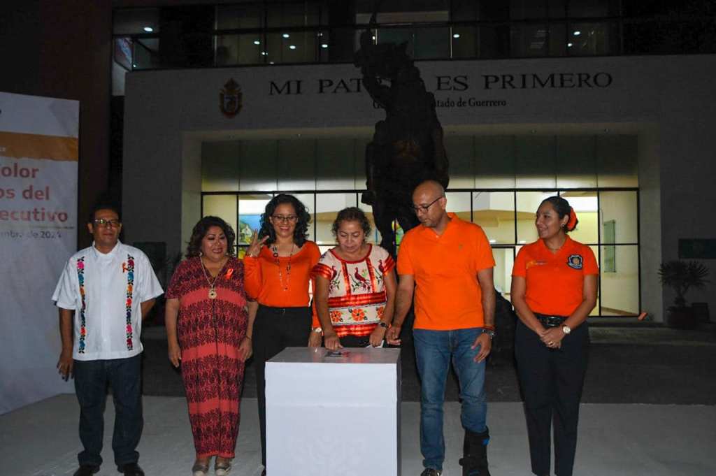 Chilpancingo, Gro., 25 de noviembre del 2024.- Como parte de la conmemoración del Día Internacional de la Eliminación de la Violencia contra la Mujer, la secretaria de la Mujer, Violeta Pino Girón, en representación de la gobernadora, Evelyn Salgado Pineda, encabezó el “Encendido naranja” del Recinto oficial del Poder Ejecutivo, también conocido como Casa del Pueblo.