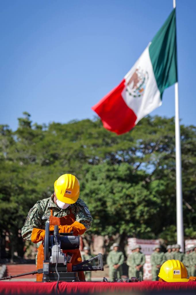 En la explanada del 50° Batallón de Infantería, perteneciente a la 35 Zona Militar en Chilpancingo, junto con el comandante de la Novena Región Militar, Ernesto José Zapata Pérez, y el comandante de la 35 Zona Militar, Jorge Pedro Nieto Sánchez, la mandataria destacó que, con estas acciones, Guerrero continúa avanzando hacia un estado más seguro, en el que las niñas, niños y jóvenes puedan crecer alejados de la violencia.