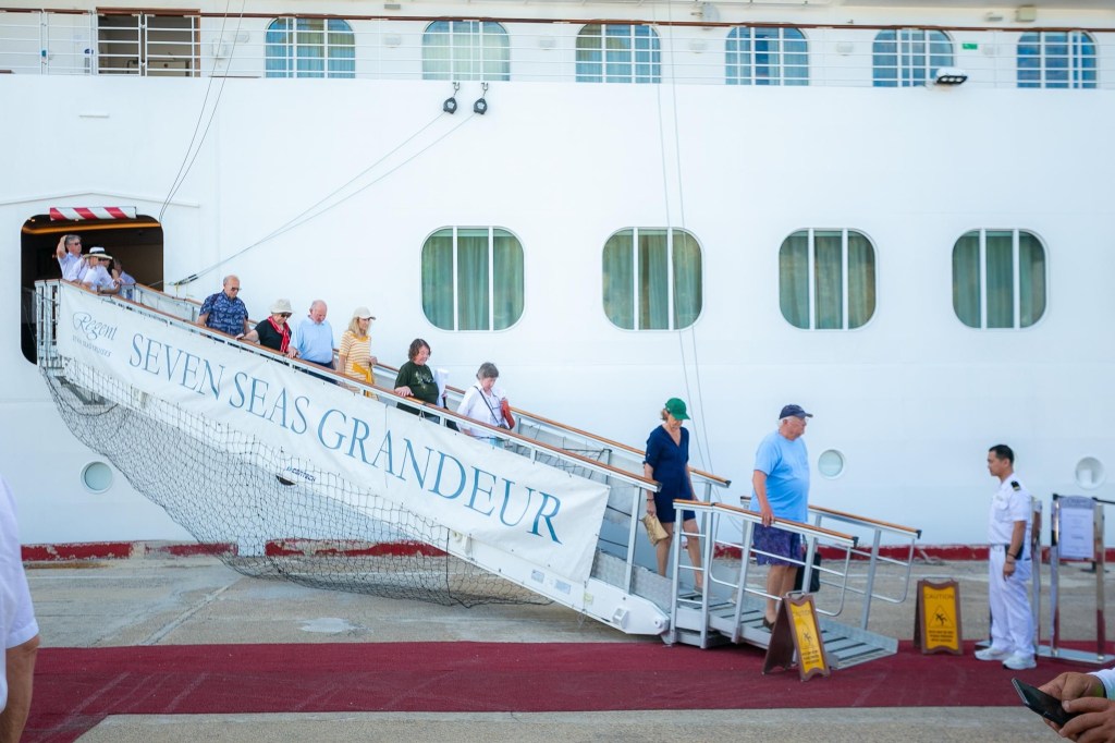 Acapulco, Gro., 13 de enero de 2025.- La Secretaría de Turismo en Guerrero (SECTUR) dio la bienvenida a los turistas que arribaron en el crucero MS Seven Seas Grandeur, es el segundo crucero del 2025 procedente de Cabo San Lucas y con destino a Puerto Quetzal, Guatemala, con un total de mil 265 personas a bordo entre pasajeros y tripulantes.