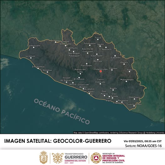 PRONÓSTICO DE PRECIPITACIÓN EN GUERRERO, PARA EL 07 DE MARZO DE 2025: