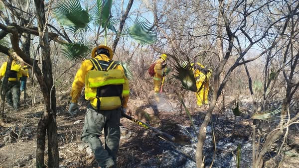 El incendio se localiza entre las comunidades de El Naranjo y Platanillo, donde hasta el momento se han realizado más de dos mil 900 metros de líneas de control, las cuales se han aplicado para frenar de manera natural el paso del fuego y proteger zonas pobladas cercanas al incendio.