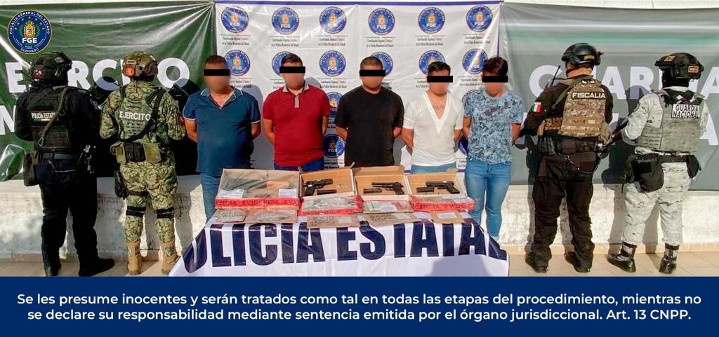 Chilpancingo, Gro., a 23 de marzo de 2025.-La Fiscalía General del Estado de Guerrero (FGE Guerrero), en coordinación con la Secretaría de la Defensa Nacional (DEFENSA), la Guardia Nacional (GN), la Secretaría de Seguridad y Protección Ciudadana (SSyPC) y la Secretaría de Seguridad Pública de Guerrero (SSPGro), cumplimentó una orden de aprehensión en contra de José “N”, Uriel “N”, Celso “N”, Juan “N” y Adrián “N”, en agravio de un hombre en Chilpancingo.