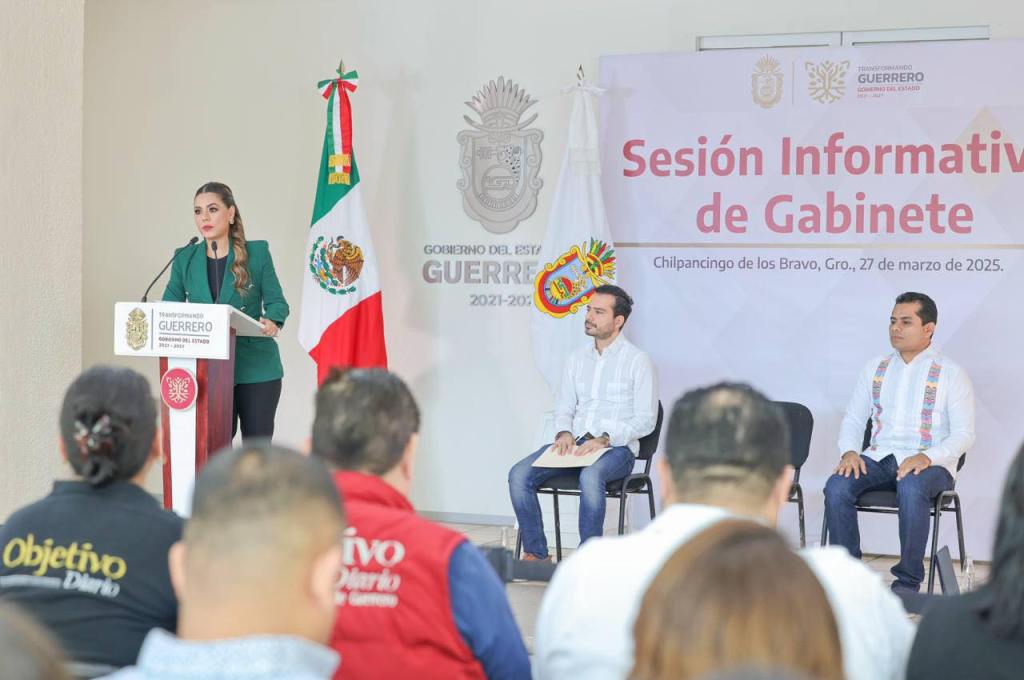 Chilpancingo, Gro., 27 de marzo de 2025.- La gobernadora Evelyn Salgado Pineda encabezó la cuarta sesión informativa de gabinete, en la que se destacó que Guerrero se mantiene a la vanguardia en la implementación de políticas públicas con perspectiva de género y bienestar social. Entre los logros mencionados, sobresale el programa Tarjeta Violeta, que beneficia a 20 mil jefas de familia, así como el hecho de que Guerrero mantiene la tasa de desempleo más baja del país, con un importante avance en la vinculación a empleos formales y la reducción de la informalidad.