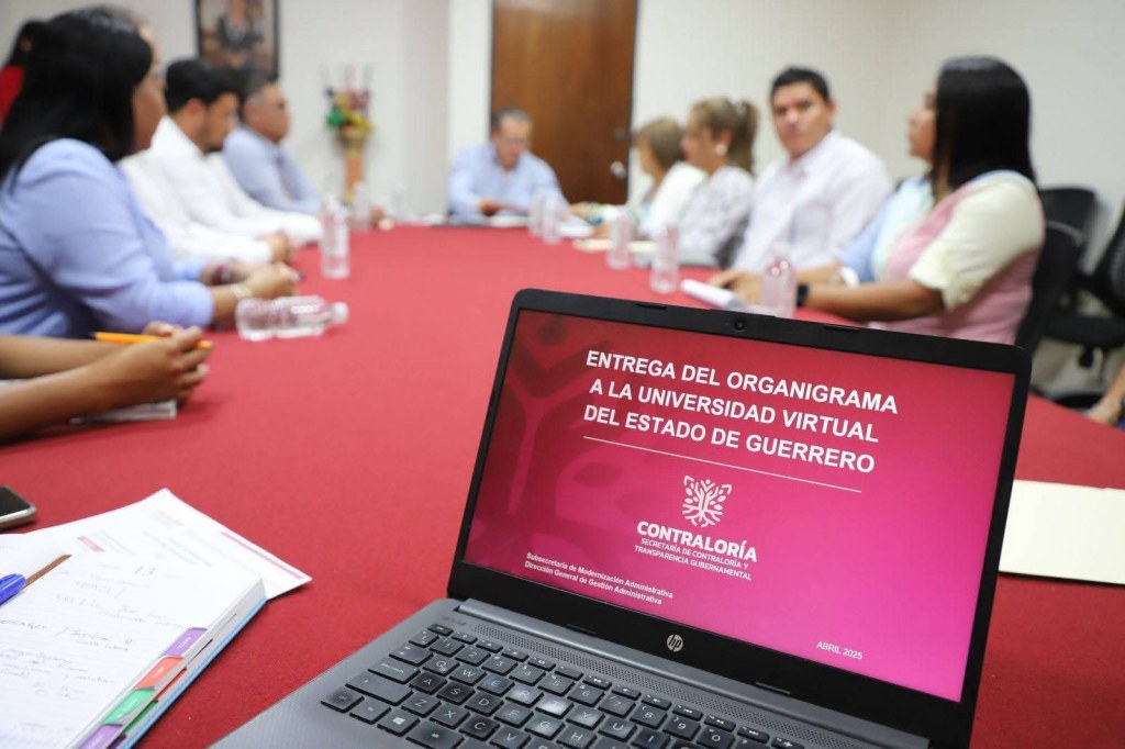 Chilpancingo, Gro., 8 de abril de 2025.– Como parte de las acciones para modernizar y fortalecer la estructura administrativa del Gobierno del Estado, la Secretaría de Contraloría y Transparencia Gubernamental, realizó la entrega del organigrama actualizado y los dictámenes presupuestales correspondientes a la Universidad Virtual del Estado de Guerrero (UVEGro).