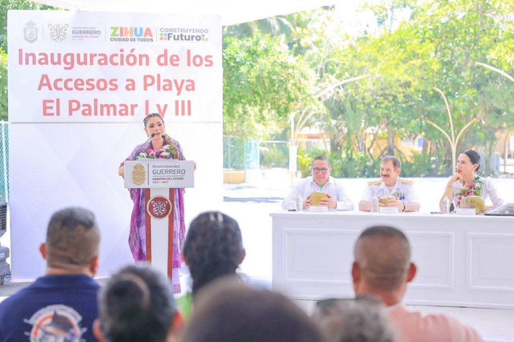 Zihuatanejo, Gro., 8 de abril de 2025.- “Sigamos caminando con paso firme, con visión y con convicción por un Zihuatanejo que brilla, por un Guerrero que se levanta, que avanza y que no deja a nadie atrás y a nadie fuera. Aquí vamos todas y todos para que nuestro estado siga brillando, para que siga siendo ese referente, no nada más en el turismo, sino en muchos aspectos a nivel nacional e internacional”, expresó la gobernadora Evelyn Salgado Pineda durante la inauguración de los accesos a Playa Palmar I y III en Ixtapa, Zihuatanejo.