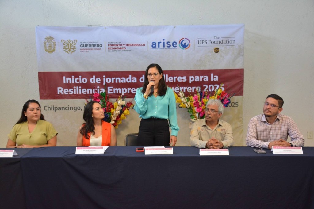 Chilpancingo, Gro., 08 de abril del 2025.- Con el objetivo de brindarles las herramientas y conocimientos para minimizar los impactos ante los riesgos de desastres naturales, el gobierno del estado inició la jornada de talleres para la Resiliencia empresarial en Guerrero, como parte de la firma del Memorando de Entendimiento (MoU) entre la Secretaría de Fomento y Desarrollo Económico de Guerrero (SEFODECO) y ARISE Mx.