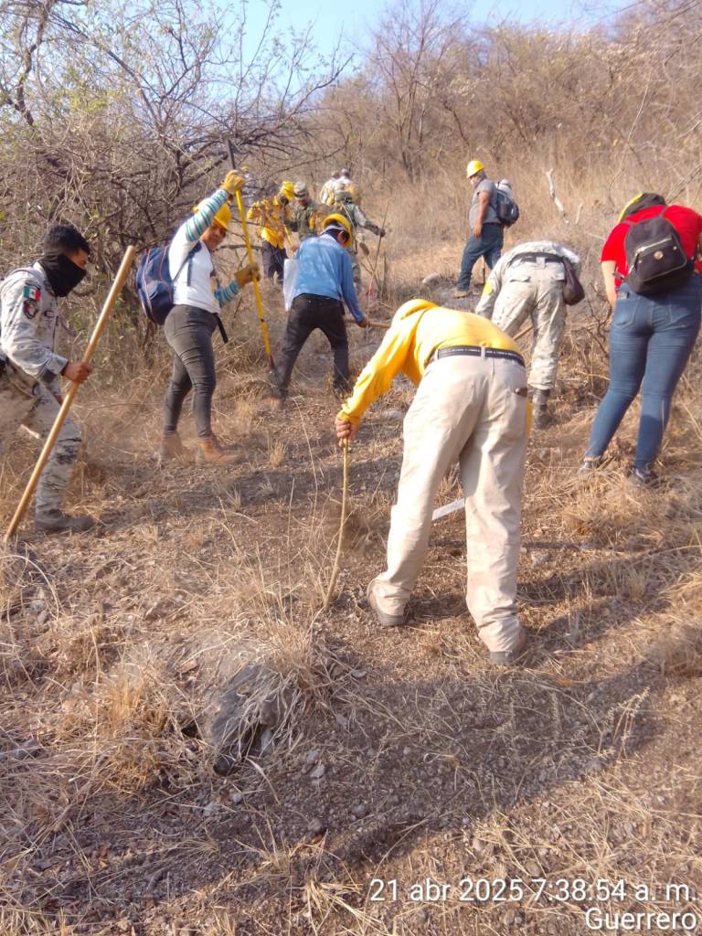 Iguala, Gro., 21 de abril de 2025. – Como parte de las acciones coordinadas por la gobernadora Evelyn Salgado Pineda, brigadistas de la Secretaría de Gestión Integral de Riesgos y Protección Civil, esperan el arribo de un helicóptero de la Secretaría de la Defensa Nacional (Sedena) para sumarse a los trabajos de control y liquidación del incendio forestal que afecta la zona de Cerro Grande, en el municipio de Iguala de la Independencia.