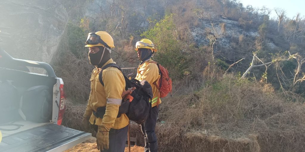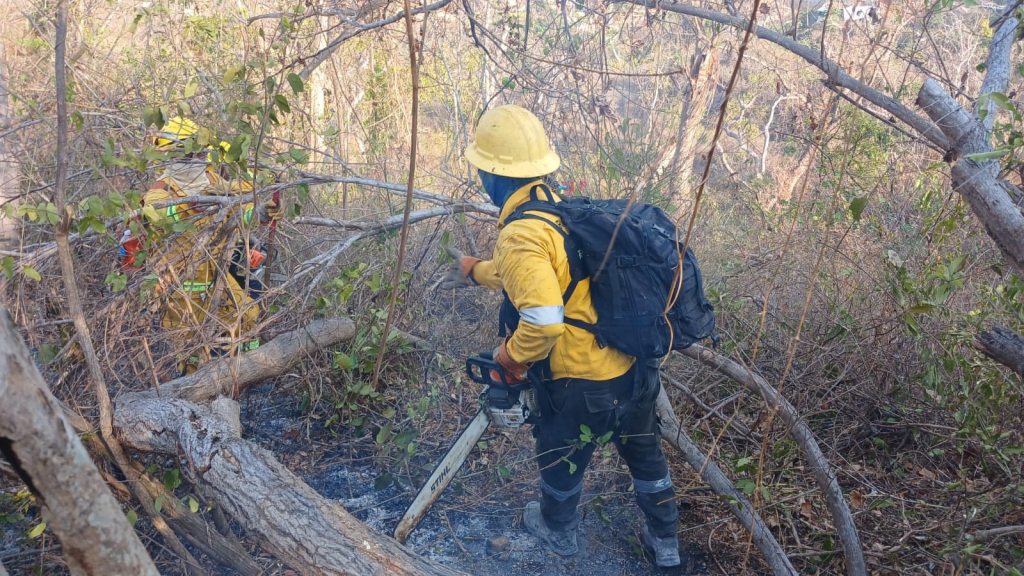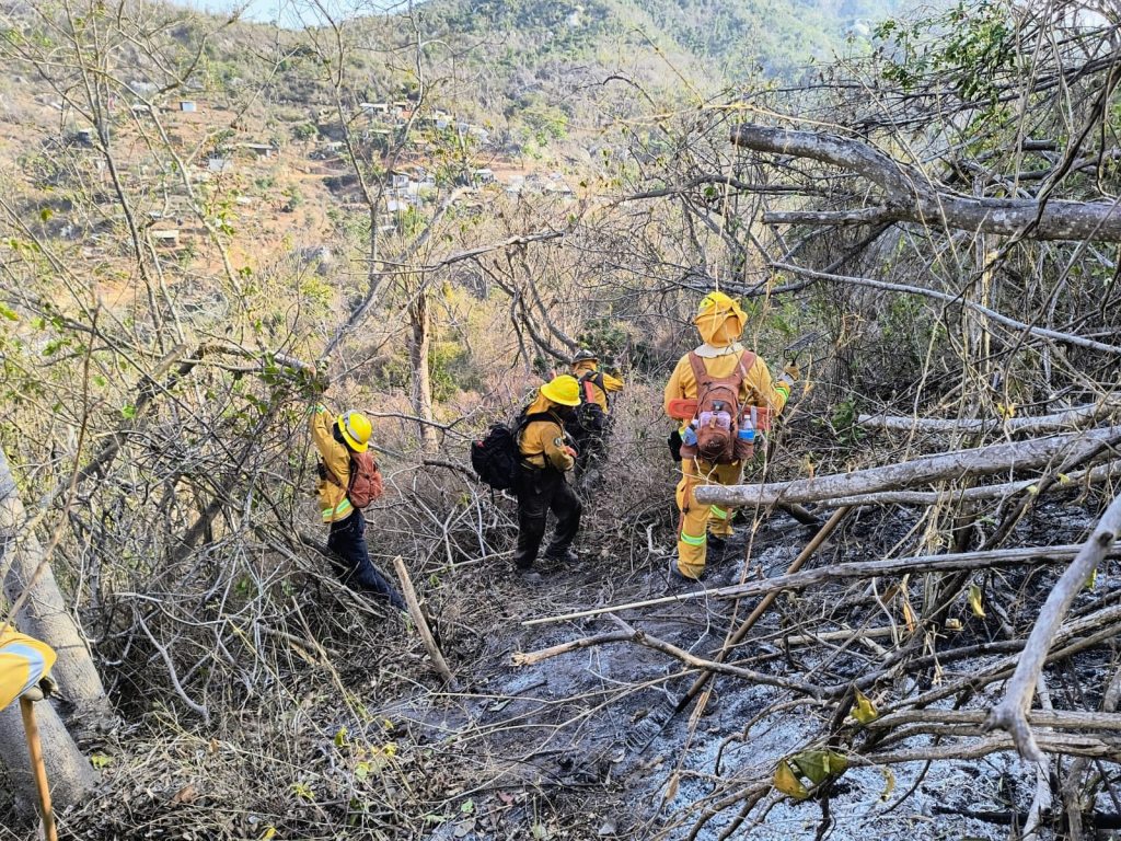 Por indicaciones de la gobernadora, Evelyn Salgado Pineda, la Secretaría de Gestión Integral de Riesgos y Protección Civil reforzó los trabajos de atención y combate del incendio forestal que se registra en el Parque Nacional El Veladero, en la parte alta de la colonia Chinameca de Acapulco.
