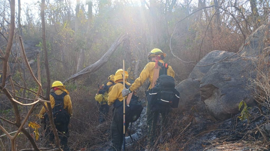 Esta mañana se incorporaron otras brigadas de la región Centro del estado, reforzando los trabajos de combate para lograr el control y la liquidación total del fuego en el menor tiempo posible.