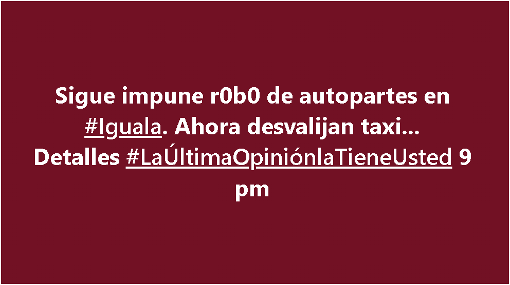 ¿Hasta cuándo volverá la tranquilidad a Iguala? Y estamos hablando de delitos del fuero común, dejando de lado los de alto impacto que se tendrían que tocar en otro comentario más adelante.