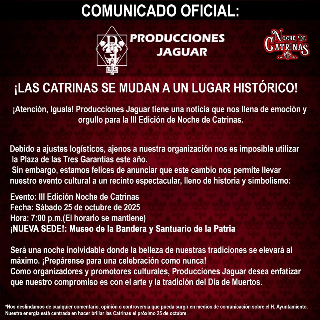 Resaltó que al final el cambio les favorece por el realce que dará el espacio a «Noche de Catrinas», evento al que invita a la ciudadanía asistir y disfrutar de una noche inolvidable donde la belleza de nuestras tradiciones se elevará al maximo.