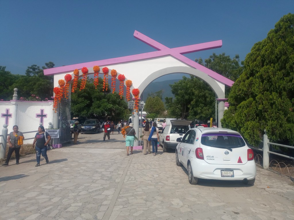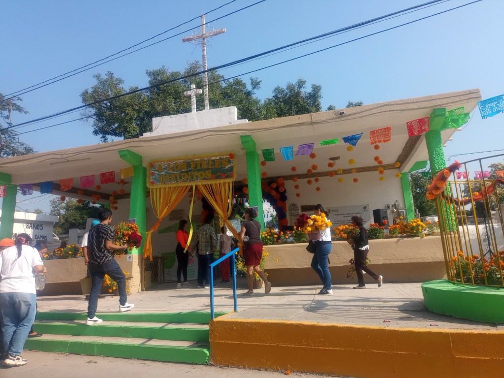 En un recorrido observamos el correcto ordenamiento del comercio de temporada al exterior del panteón municipal, como la fluidez vehicular que se tiene con el permanente operativo de tránsito municipio, sin faltar el espacio de primeros auxilios médicos, que al momento solo reporta incidentes menores emocionales.